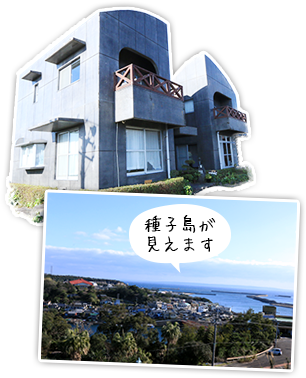 安房の町を一望する高台に建ち、晴天ならとなりの種子島全体を